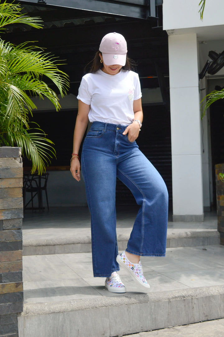 Jean tiro alto en tela rigida con silueta tipo "CULLOTE". Ideal para armar tus outfits. Y para estar comoda al mismo tiempo
