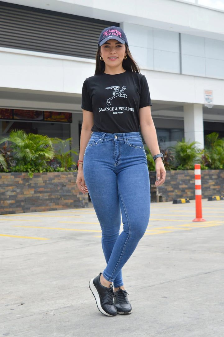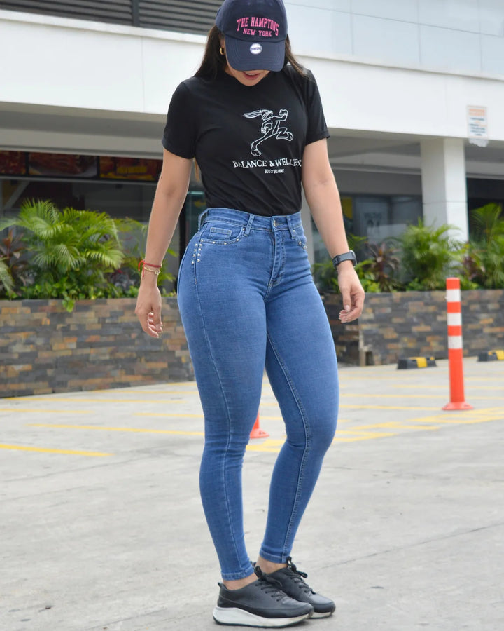 Jean tiro alto en tela stretch con silueta tipo "skinny fit". Ideal para armar tus outfits.